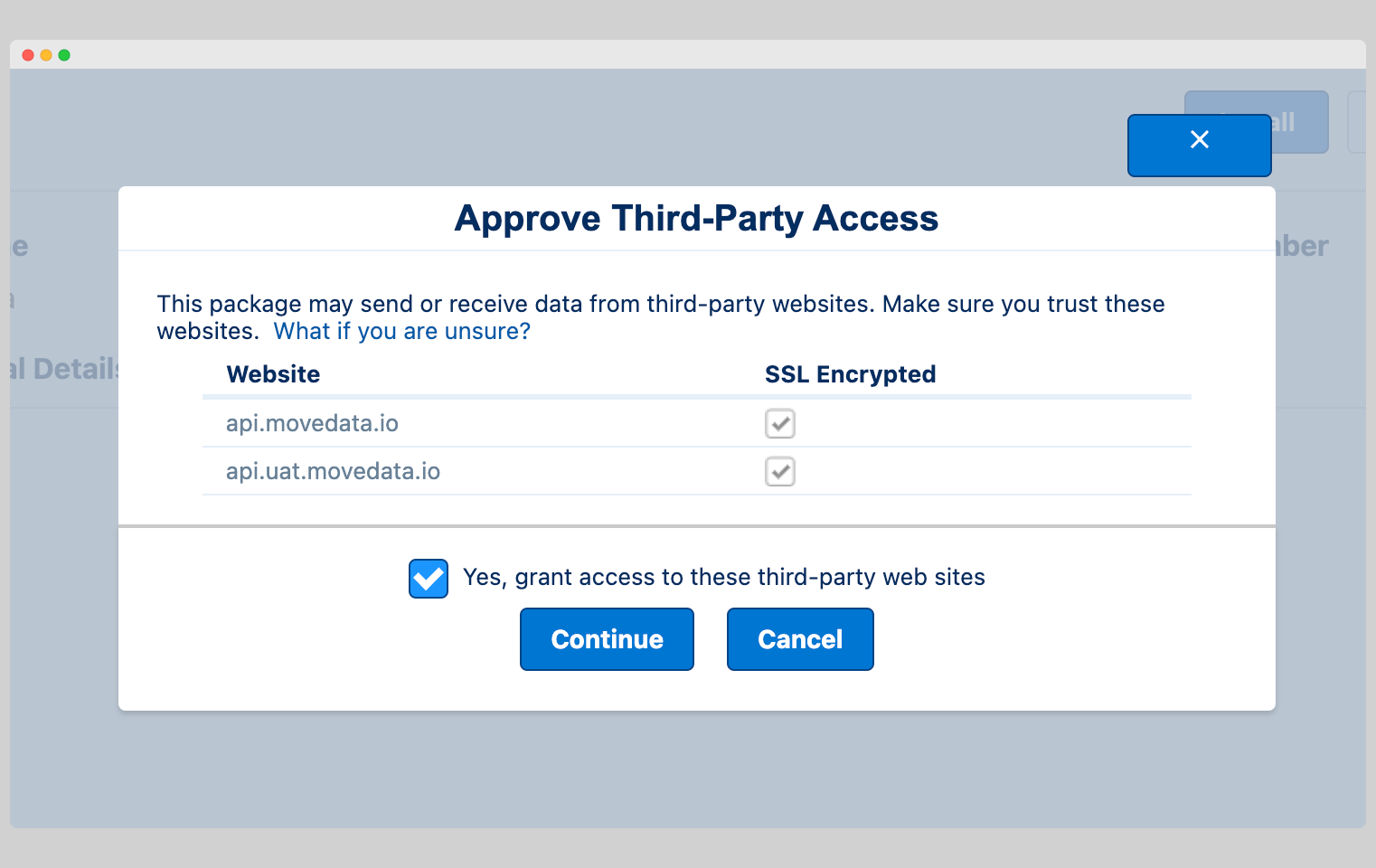 Remote Site Access: MoveData requires permission to connect to its servers for: