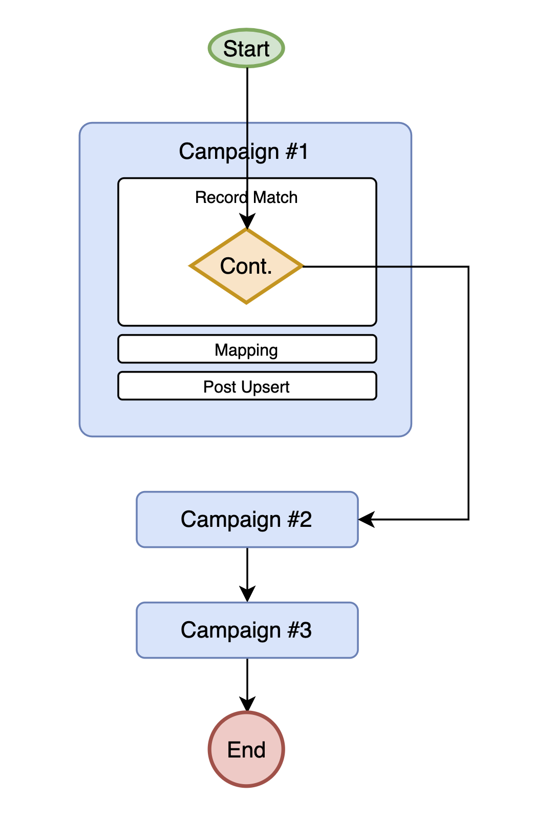 This command is used to direct MoveData to no longer process the existing phase. A common use for this is when custom logic has been implemented in a campaign record match to override the top level campaign with a different Salesforce Campaign record but you want the child campaigns to still be processed. By executing a "Continue" on the top level campaign, it is protected it's data being overwritten by the Mapping and following actions.