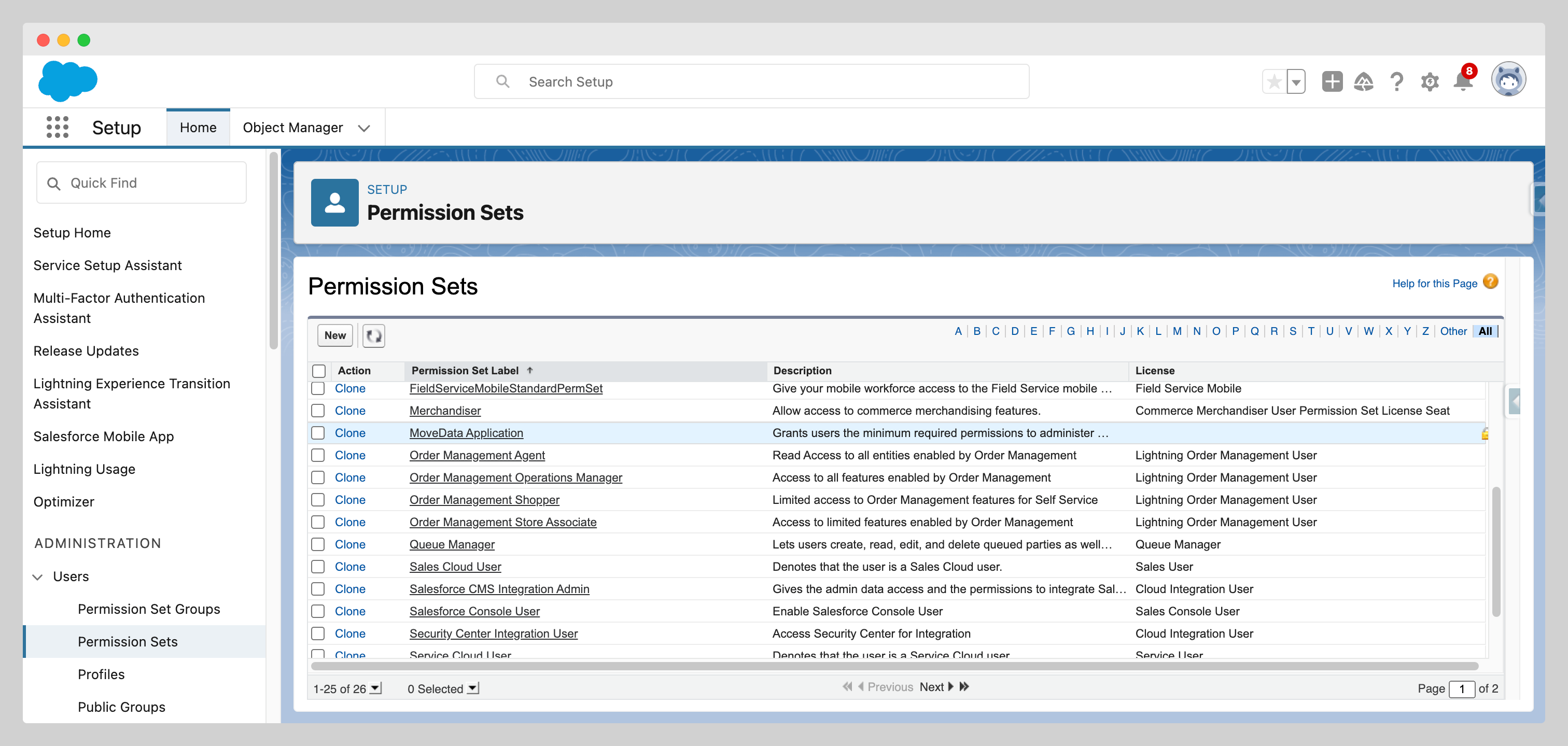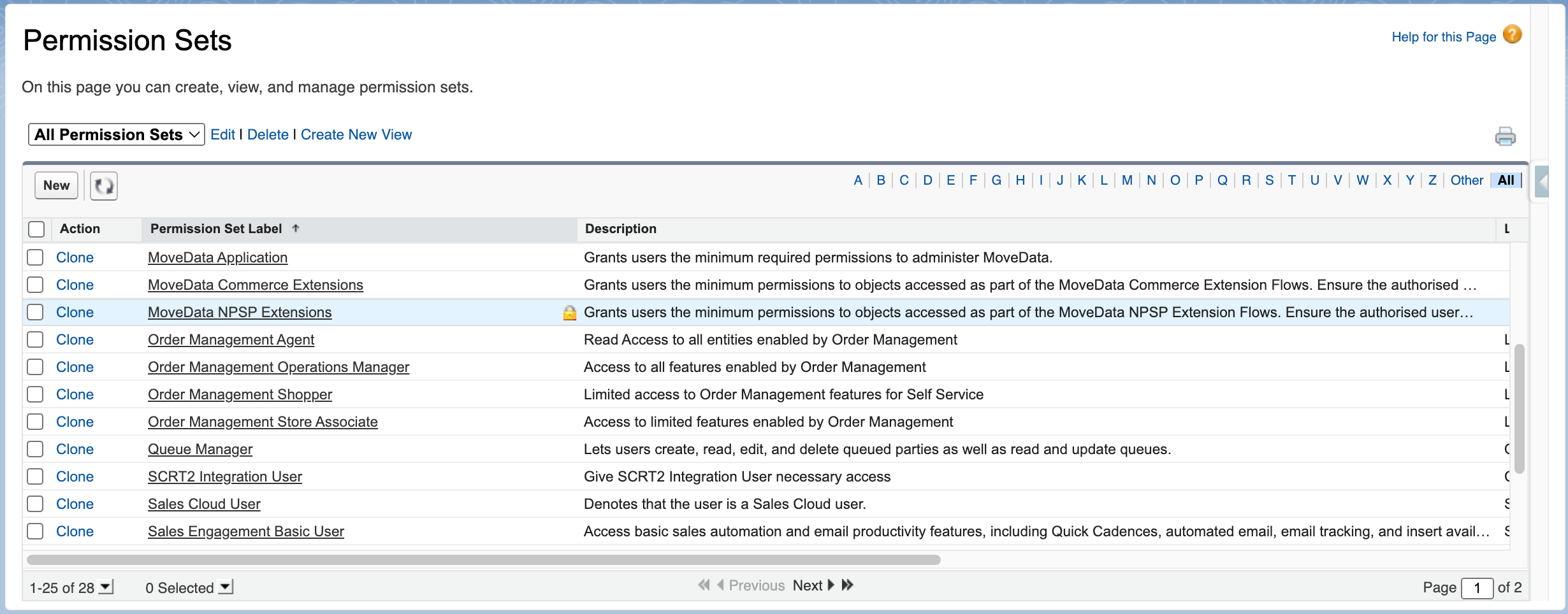 - Find Extension Sets: Look for permission sets beginning with "MoveData" followed by your extension name