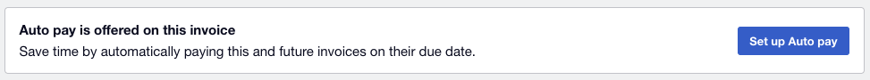 When you receive your invoice there will be a link to view and pay online. Click the link and notice a Set up Auto Pay link in the top right hand side: