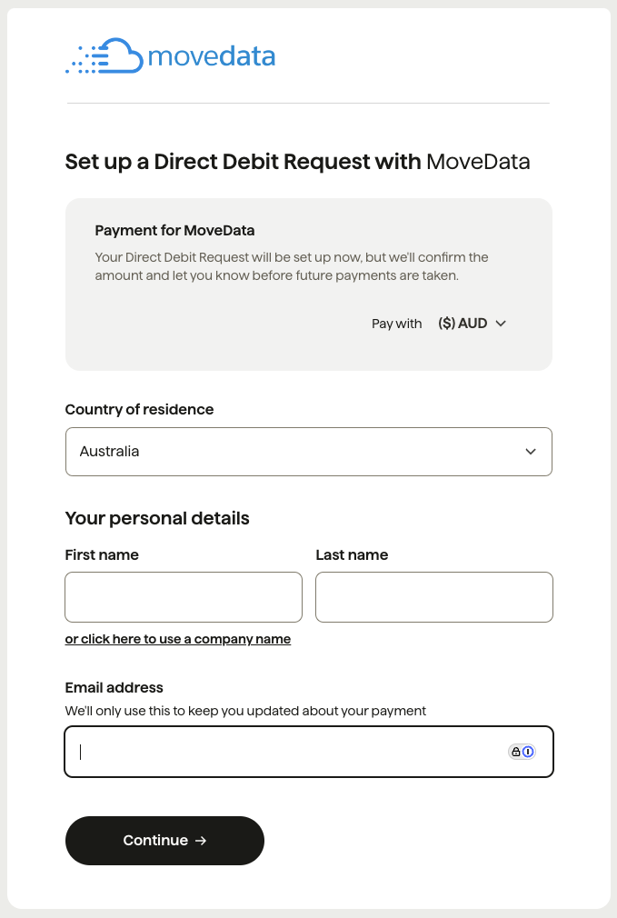 Click the Direct Debit button at the bottom of the interface which appears when you click Set up Auto Pay. You can then follow the prompts to set up a direct debit (via GoCardless - link to security at GoCardless).