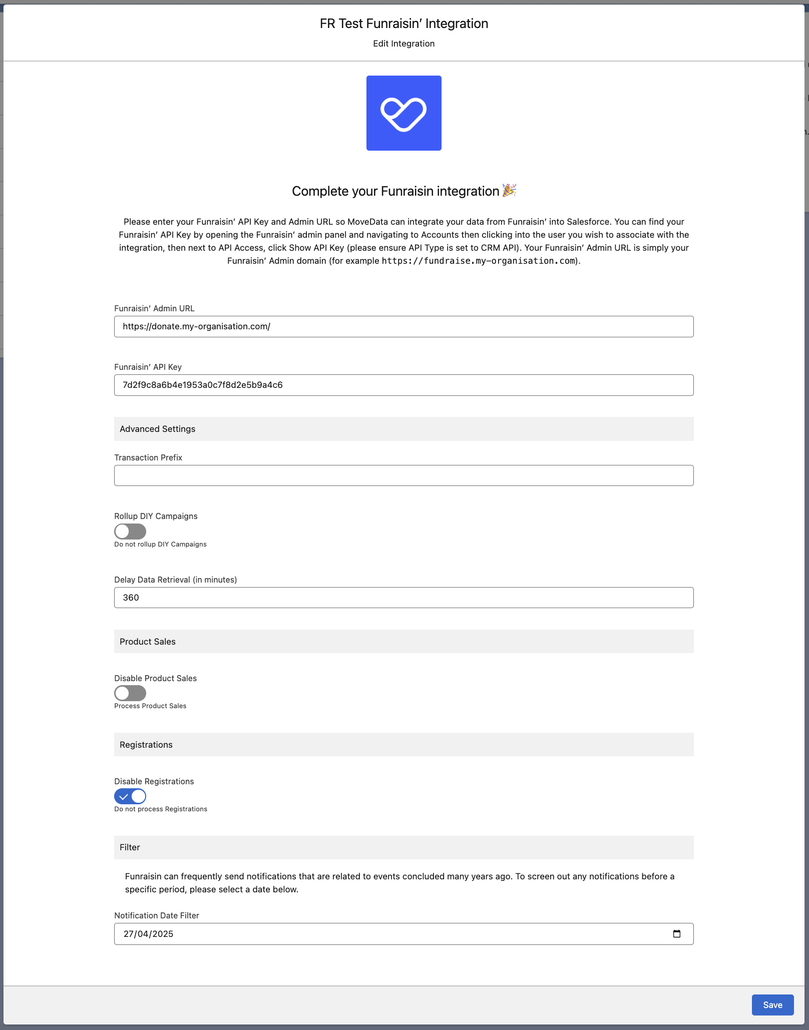The MoveData Funraisin integration provides comprehensive, automated synchronisation between your Funraisin fundraising platform and Salesforce. This powerful integration ensures that all donation activities, supporter registrations, event data, sales transactions, raffles, and ticketing information are automatically transferred to your Salesforce environment, eliminating manual data entry whilst maintaining complete data accuracy.